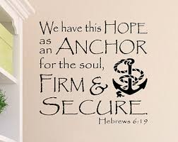 Hebrews Hebrews 6 verse 19: “We have this hope — like a sure and firm anchor of the soul.”