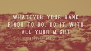 Ecclesiastes 9 verse 10: “Whatever your hand finds to do do it with your might”.