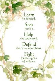 Isaiah 1 Verse 17 “Do Good, Seek justice, Help the oppressed, Defend the orphan, Plead for the widow.”,