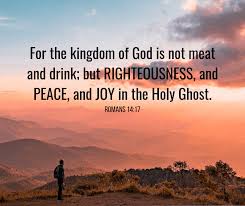 Romans 14 Verse 17: “For the kingdom of God is not eating and drinking, but righteousness, peace, and joy in the Holy Spirit.”
