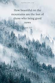 Isaiah 52 Verse 7: “ How beautiful on the mountains are the feet of the herald, who proclaims peace, who brings new of good things, who proclaims salvation.”