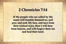 (If) My people who are called by My Name humble themselves, pray and seek My face, and turn from their evil ways, then I will hear from heaven, forgive their sin,and heal their land.