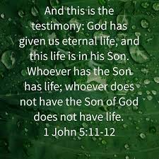 V 11 And this is the testimony, God has given us eternal life, and this life is in His Son {Christ Jesus}.