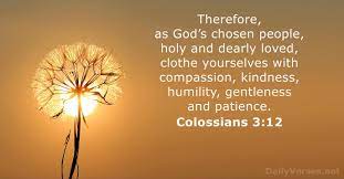 Colossians 3 Verse 12: “Therefore, God’s chosen ones, holy and loved, put on heartfelt compassion, kindness, humility, gentleness, and patience”.