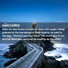 Mark 3 verse 5: “After looking around at them with anger and sorrow at the hardness  of their hearts”.