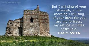 “But I will sing of your strength and will joyfully proclaim Your faithful love in the morning. For You have been a stronghold for me. That is from Psalm 59 Verse 16: about singing to the Lord.