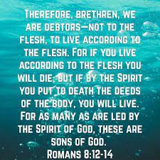 Verse 12:”So then, brother {and sisters} we are not obliged to the flesh to live according to the flesh,