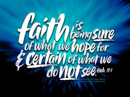 Hebrew 11 verse 1 KJV. “Now faith is the substance of things hoped for, the evidence of things not seen.”