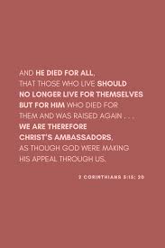 2 Corinthians 5 Verse 20″ “We are therefore Christ’s ambassadors as though God were making His appeal through us”