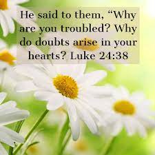 Why are we troubled. In Luke 24 verse 38: Jesus asks, “‘Why are you troubled?’ ‘And why do doubts arise in your hearts’.”