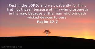 “Rest in the Lord, and wait patiently for Him; Do not fret because of him {or her} who prospers in his {or her} way, Because of the man {or woman} who brings wicked schemes to pass”.