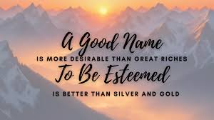 “A good Name is more desirable than great riches to be esteemed is better than silver and gold”.