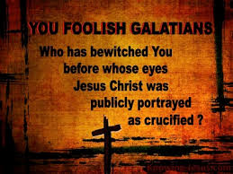 Galatians 3 verse 1: “You foolish Galatians! Who has hypnotized you, before whose eyes Jesus Christ was vividly portrayed as crucified.”