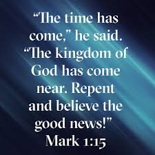 “The time is fulfilled, and the Kingdom of God has come near. Repent and believe the good news”.HSB