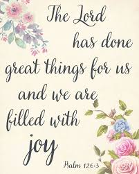 Psalm 126 verse 3: “The Lord had done great things for us we were joyful”