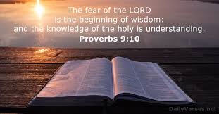 Proverbs 9 v 10; “The Fear of The Lord is the beginning of wisdom; and knowledge of the Holy is understanding”.