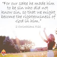 2 Corinthians 5 Verse 21: “He made the One Who did not know sin to be sin for us, so that we might become the righteousness of God in Him”.