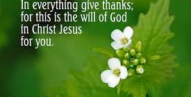 1 Thessalonians 5 verse 18 “Give thanks, in everything, for this is God’s will for you in Christ Jesus.” If we read verses 16 and 17 before, we will see […]