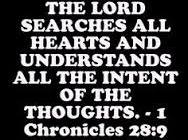 1 Chronicles 28 verse 9; “Know God, and  serve Him with a whole heart and a willing mind, for the Lord searches every heart and understands the intention of every […]