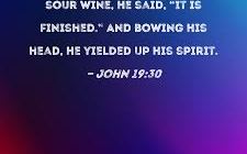Scripture Verse of the Week John 19 Verse 30: “When Jesus had received the sour wine’. He said, ‘It is finished!’ Then bowing His head, He gave up His Spirit”. […]