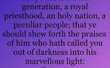 1 Peter 2 verse 9 :{New Living Bible}: V9: ‘“But you are not like that, for you are a chosen people. You are royal priests,’ a holy nation. God’s […]