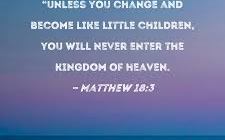 Matthew 18 Verse 3: “’assure you,’ He said, ‘unless you are converted’ and become like children, you will never enter the kingdom of heaven’.” And from the Passion Translation: “Learn […]