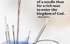 Mark 10 verse 25: “It is easier for a camel to go through the eye of a needle than for a rich person to enter the kingdom of God”. This […]