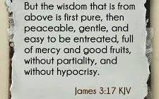 James 3 verses 17 and 18; {Message Bible}: “Real wisdom, God’s wisdom. begins with a holy life and is characterized by getting along with others. it is gentle and reasonable, […]