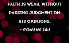 Romans 14:1, “As for the one who is weak in faith, welcome him, but not to quarrel over opinions.” 13, “therefore let us not pass judgement on one another any […]