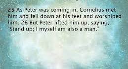 Acts !0 verse 25 and 26: V25:When Peter entered Cornelius met him, fell at his feet, and worshiped him”. V26: “But Peter helped him up and said, ‘Stand up I […]