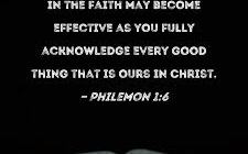Philemon 1 Verse 6: “I pray that your participation in the faith may become effective through knowing every good thing that is in us for the glory of Christ”. Philemon […]