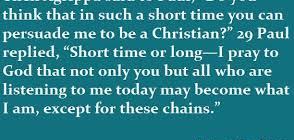 Acts 26 Verse 29: ‘ I wish before God’, replies Paul, ‘that whether easily or with difficulty, not only you but all who listen to me today might become as […]